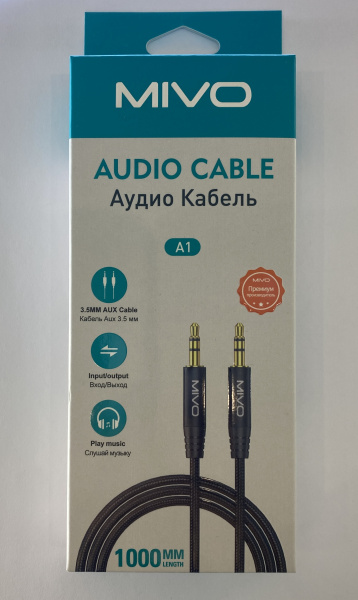 Mivo аудио кабель MX-A1 3,5мм AUX-3,5мм AUX 1м коннекторы-алюмин., нейлон оплётка оптом