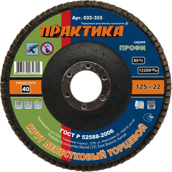 ПРАКТИКА Круг лепестковый шлифовальный серия "Профи" 125 х 22мм, Р 40 032-355 оптом