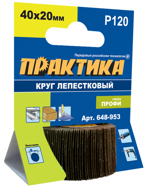 ПРАКТИКА Круг лепестковый с оправкой,серия Профи 40х20мм, P120, хвостовик 6 мм 648-953 оптом