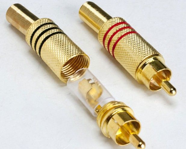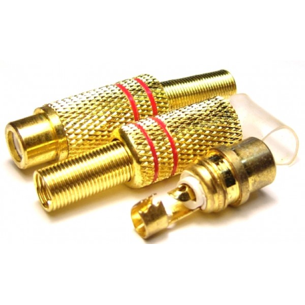 Арбаком APP-095_R разъём RCA(тюльпан) гнездо, на кабель (золото,2 красные полосы) п/ос оптом