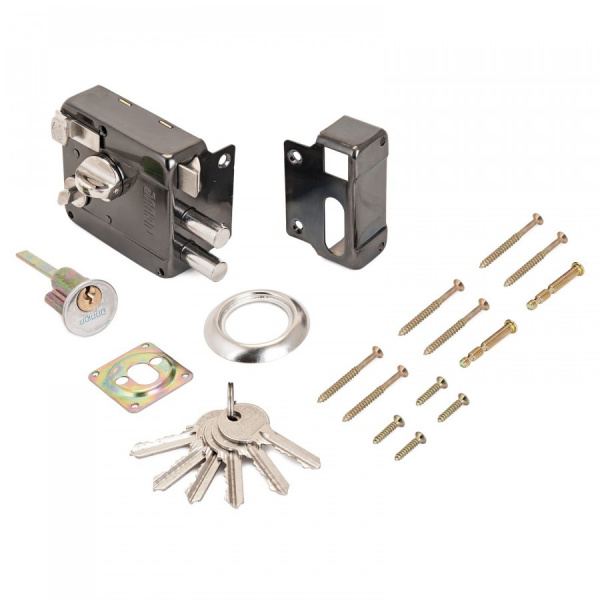 Накладной замок – один из простейших запорных механизмов, который при этом способен обеспечить высокий уровень защиты. Он устанавливается с внутренней стороны двери, без врезания в дверное полотно.